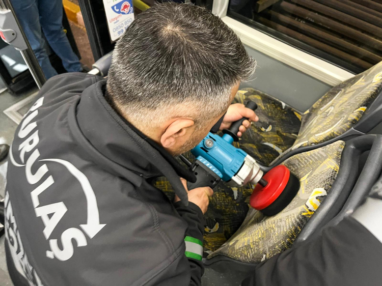 Otobüs koltuklarını profesyonel ve ileri teknolojik ekipmanlarla tek tek yıkayan BURULAŞ ekipleri, araç içi zeminleri, cam yüzeyleri ve sık temas edilen alanları detaylı bir şekilde dezenfekte etti. Titiz çalışmalar sayesinde otobüsler, hijyen ve konfor açısından en üst standartlara ulaştırılarak Ramazan Bayramı için hazır hale getirildi.