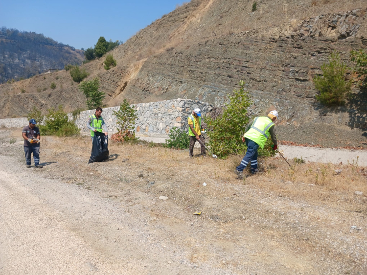 Park ve Bahçeler Dairesi Başkanlığı ve Tarım Peyzaj AŞ tarafından oluşturulan 100 kişilik ekip ise Bursalıların yardım amacıyla gönderdiği ancak yangın bölgelerinde risk oluşturabilecek atıkları büyük bir titizlikle topluyor. Alanda gezerek plastik, cam ve kağıt gibi atıkları tek tek toplayan ekipler, olası yeni yangınların önüne geçilmesini amaçlıyor.