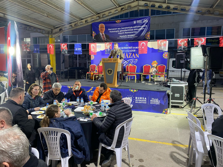 Bursa Büyükşehir Belediyesi Başkanvekili Yalçın Işıkyıldız, dayanışmanın, birliğin ve bereketin ayı olan Ramazan’da aynı sofrada buluşmaktan büyük mutluluk duyduklarını dile getirdi. 17 ilçede iftar programları düzenlediklerini, 3 farklı iftar noktasında her gün binlerce vatandaşa ulaştıklarını, 15 farklı noktada iftariyelik dağıtımı yapıldığını belirten Işıkyıldız, Ramazan’ın bereketini tüm Bursalılarla paylaştıklarını ifade etti.