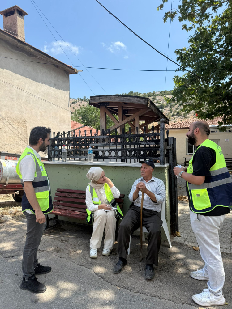 Çocukların moral ve motivasyonunu artırmak için atölye etkinleri düzenleyen, vatandaşların sağlık hizmetine kolaylıkla ulaşabilmeleri için mobil sağlık ekiplerini ve Sağlık Otobüsü’nü yangın bölgesine gönderen Büyükşehir Belediyesi, son olarak gönüllülerden oluşan 10 kişilik ekiple vatandaşların ve bölgenin ihtiyaçlarını yerinde tespit ediyor. Bursa Kent Konseyi, Sosyal Hizmetler Dairesi Başkanlığı, Sağlık İşleri Dairesi Başkanlığı, Basın Yayın ve Halkla İlişkiler Dairesi Başkanlığı ve Bursa Gönüllüleri'nden oluşan ekip, yangından etkilenen köyleri ziyaret ederek halkla birebir görüşme gerçekleştiriyor. Köylülerin ihtiyaç ve önerilerini alan ekipler, diğer birimlerle iletişime geçerek taleplerin kısa sürede karşılanmasını sağlıyor.