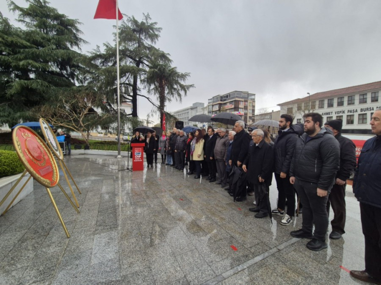 Cumhuriyet Halk Partisi (CHP) Bursa İl Başkanlığı, 24 Kasım Öğretmenler Günü'nde başöğretmen Mustafa Kemal Atatürk'ün manevi huzurunda çelenk takdimi gerçekleştirdi.