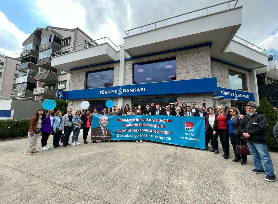 CHP Bursa Nilüfer İlçe Başkanlığı ve CHP Bursa Milletvekili adayları, FSM Bulvarında Atatürk'ün kurduğu banka önünde bağış kampanyası etkinliği için bir araya geldi.