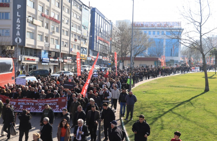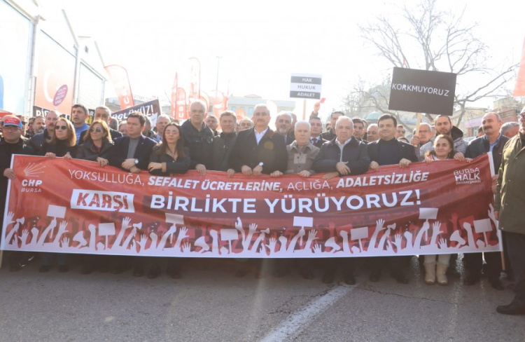 Cumhuriyet Halk Partisi Bursa İl Başkanlığı ve Bursa Halk Dayanışması binlerce yurttaşın katılımıyla açlığa, yoksulluğa, sefalet ücretlerine ve adaletsizliğe karşı yürüyüş ve basın açıklaması gerçekleştirdi. Basın açıklamasında konuşan CHP Bursa İl Başkanı Nihat Yeşiltaş, "Biz bundan sonra, omuz omuza, yürek yüreğe mücadele verip, bu güzel vatanı layık olduğu yere getireceğiz. Çünkü bizler, hırsızlığın alıp başını gittiği, çocukları ve gençleri umutsuz, kadınları korku içinde yaşayan, emekçisi sömürülen, kentleri yoksullukla boğuşan bir düzeni asla hak etmiyoruz" dedi.