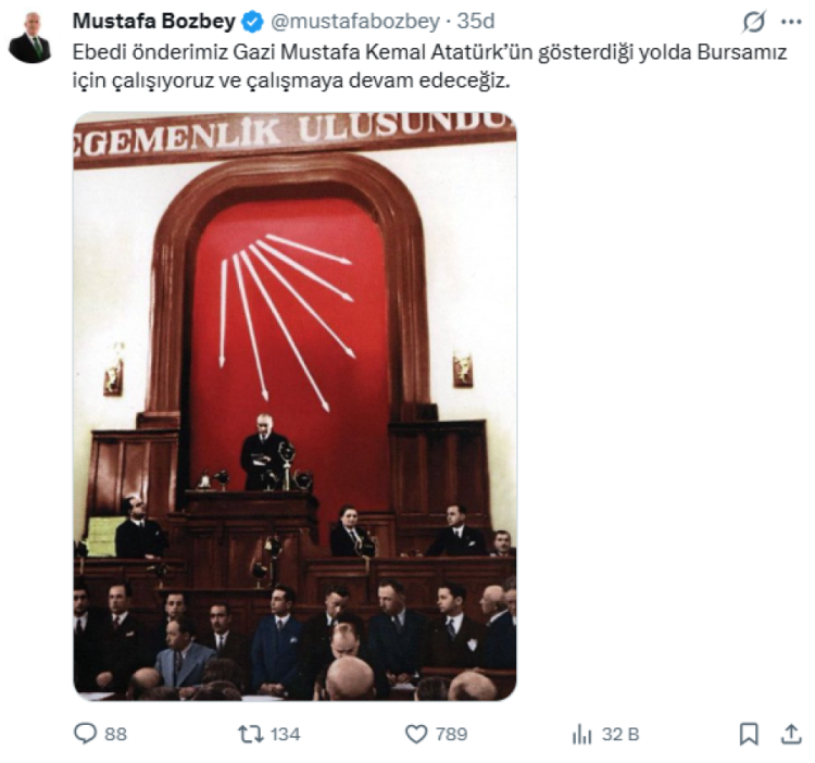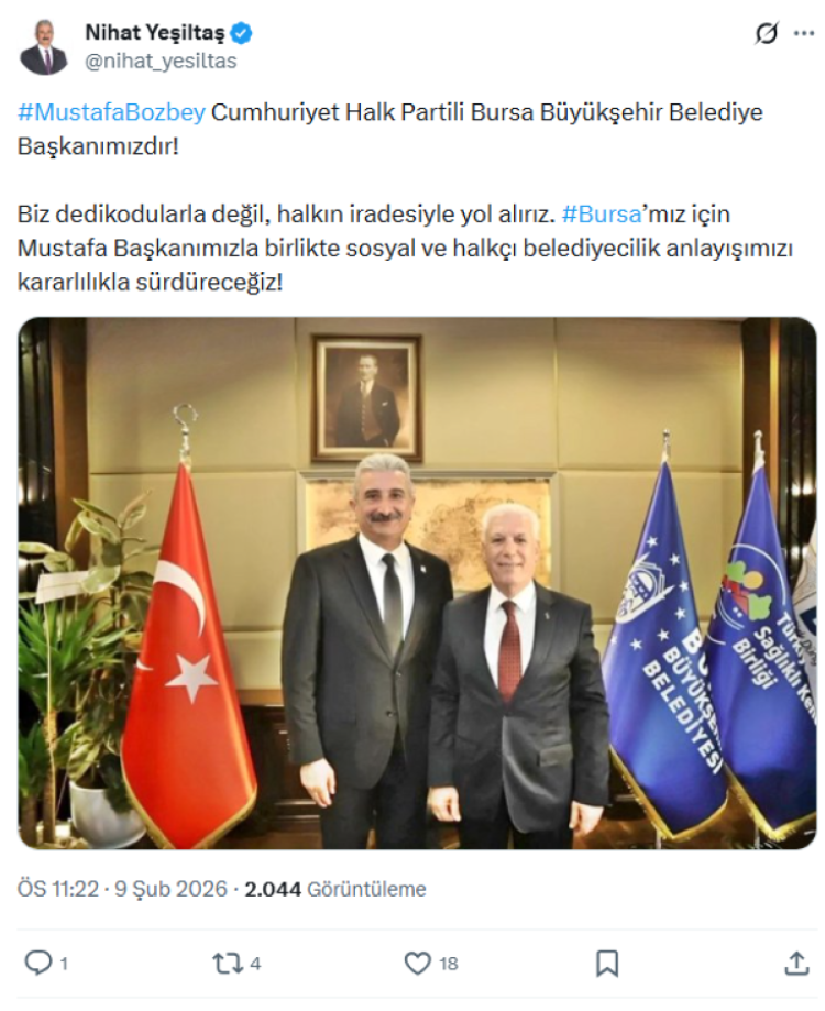 MustafaBozbey Cumhuriyet Halk Partili Bursa Büyükşehir Belediye Başkanımızdır! Biz dedikodularla değil, halkın iradesiyle yol alırız. Bursa'mız için Mustafa Başkanımızla birlikte sosyal ve halkçı belediyecilik anlayışımızı kararlılıkla sürdüreceğiz! sözlerini kullandı.