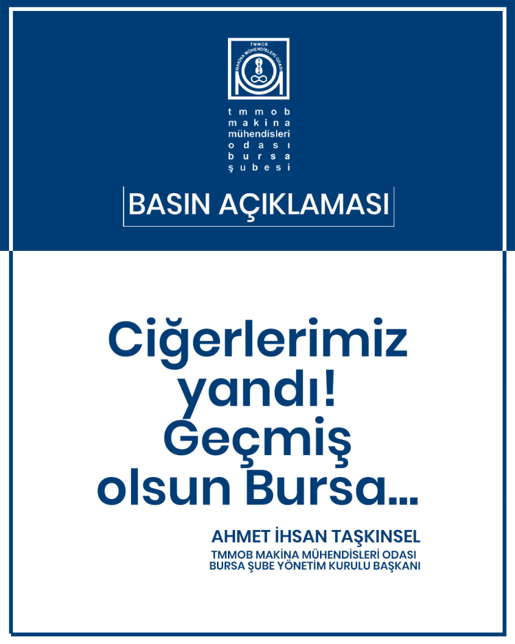 TMMOB Makine Mühendisleri Odası Bursa Şube Başkanı Ahmet İhsan Taşkınsel, Bursa’nın Gürsu ve Kestel İlçelerinde dün akşam başlayan ve sabaha karşı kontrol altına alınan yangınla ilgili açıklamada bulundu.