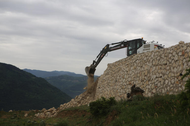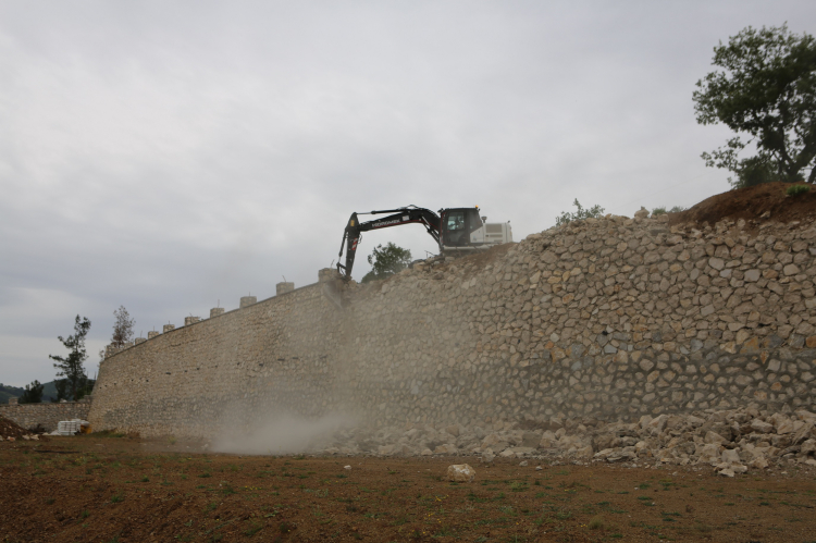 Nilüfer Belediyesi yıkım ekipleri, Dağyenice Mahallesi’nde 3 bin 800 metrekarelik taş duvarı izinsiz yapıldığı gerekçesiyle yıktı.