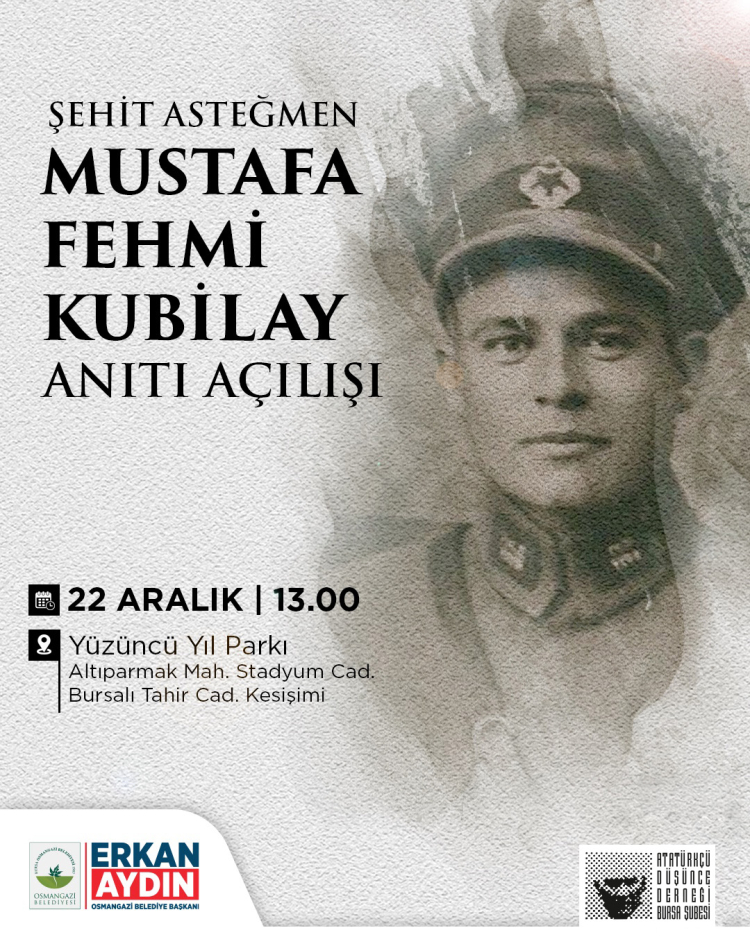 Osmangazi Belediyesi, Cumhuriyet değerlerine sahip çıkma kararlılığını bir kez daha ortaya koyarak, Şehit Asteğmen Mustafa Fehmi Kubilay’ın hatırasını yaşatmak için anlamlı bir anıt açılışına ev sahipliği yapacak.