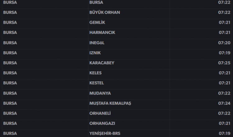 Bursa'da ise bayram namazı 07.22'de kılınacak...