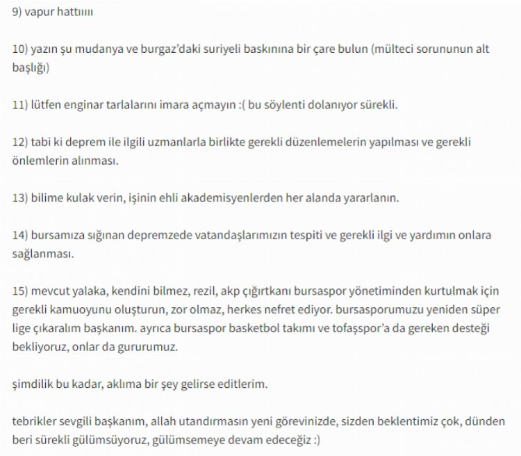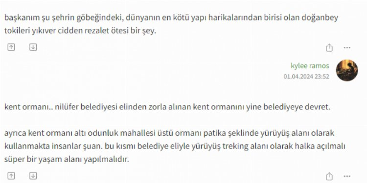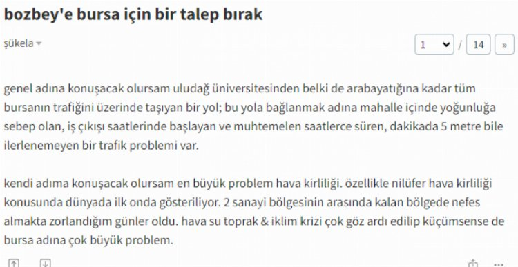 31 Mart'ta gerçekleşen Mahalli İdareler Genel Seçiminde Bursa Büyükşehir Belediye Başkanlığına CHP'den aday olan ve seçilen Mustafa Bozbey için Ekşi Sözlükte "bozbey'e bursa için bir talep bırak" adında başlık açıldı.