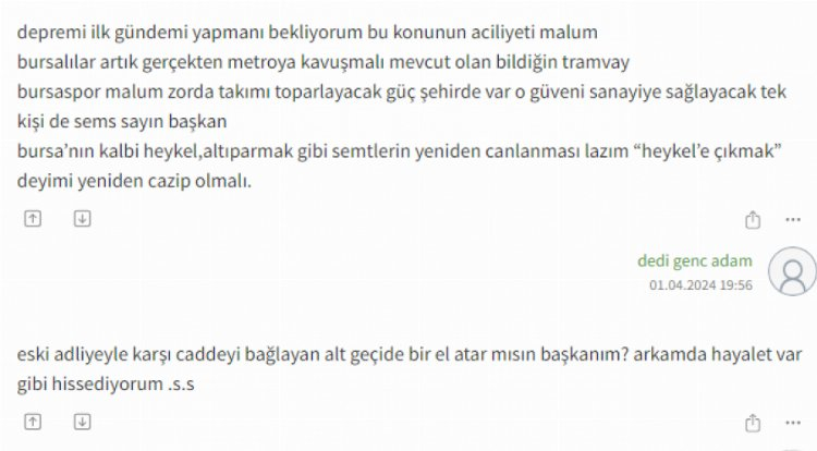 Açılan başlığın altına vatandaşlar Bozbey'e öneri ve isteklerini iletti.