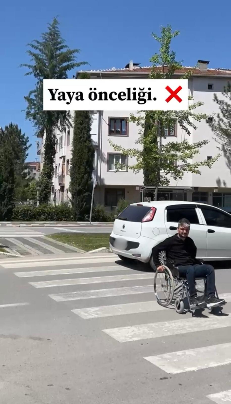 Engelli bireylerin günlük hayatta, özellikle tekerlekli sandalye ve akülü araç kullanırken yaya geçitlerine park edilen araçlar yüzünden yaşadığı sorunlar, hazırlanan bir farkındalık videosuyla gözler önüne serildi. “Farkında Mısın?” başlığıyla yayımlanan video, engelli bireylerin trafikte yaşadığı sorunları gözler önüne sererken, izleyenleri de derin bir düşünceye sevk etti.