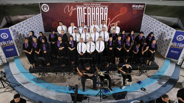 Yıldırım Belediyesi Erguvan Türk Halk Müziği Korosu’nda yaklaşık 8 aydır, türkü repertuvarı, ritim, tartım ve metronom gibi dersler alan 73 kursiyer eğitimlerini tamamladı. Eğitim döneminin sonunda Kaplıkaya Cazibe Merkezi’nde sahneye çıkan Erguvan Türk Halk Müziği Korosu, birbirinden güzel 20 eseri seslendirdi.