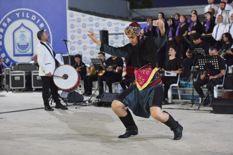 Yıldırım Belediyesi Erguvan Türk Halk Müziği Korosu ve Erguvan Halk Dansları Topluluğu, ‘Yaza Merhaba Konseri’nde izleyicilere keyifli dakikalar yaşattı.