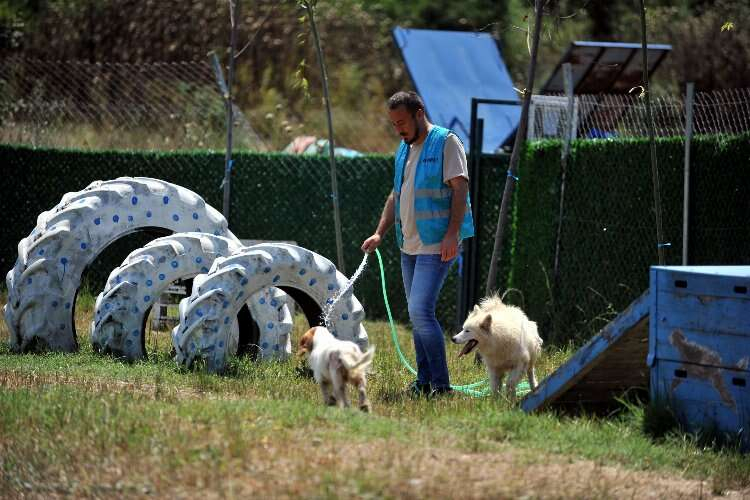 Köpekler, kısırlaştırılmasının ardından HEPAD'a ait çiftliğin köpek parkına konuldu.