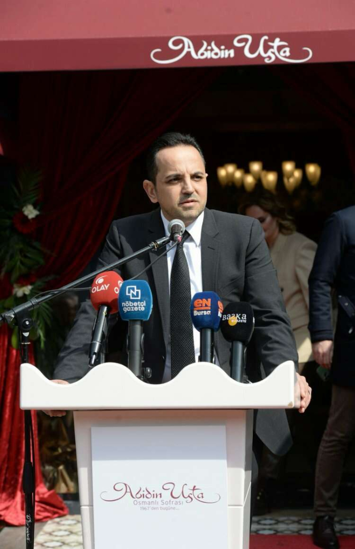 Abidin Usta Osmanlı Sofrası’nın kurucusu Abidin Özen’in hikayesi ve hayat nasihatlerini vurguladığı konuşmasında, “Abidin Usta’nın hikayesi, 1958'de Kosova'dan göçle başlayan bir hayat mücadelesi ve gece gündüz demeden çalışma ile gayretin hikayesidir” ifadelerini kullanan AK Parti Bursa Milletvekili Refik Özen; “Büyüklerimiz Abidin ve Kamil Özen’in bize bıraktıkları en önemli miras onurları ve isimleriydi. Bizler de onlardan sonra gelen kuşaklar olarak, bu değeri daha yukarılara çıkarmak için gayret ediyoruz” şeklinde konuştu.