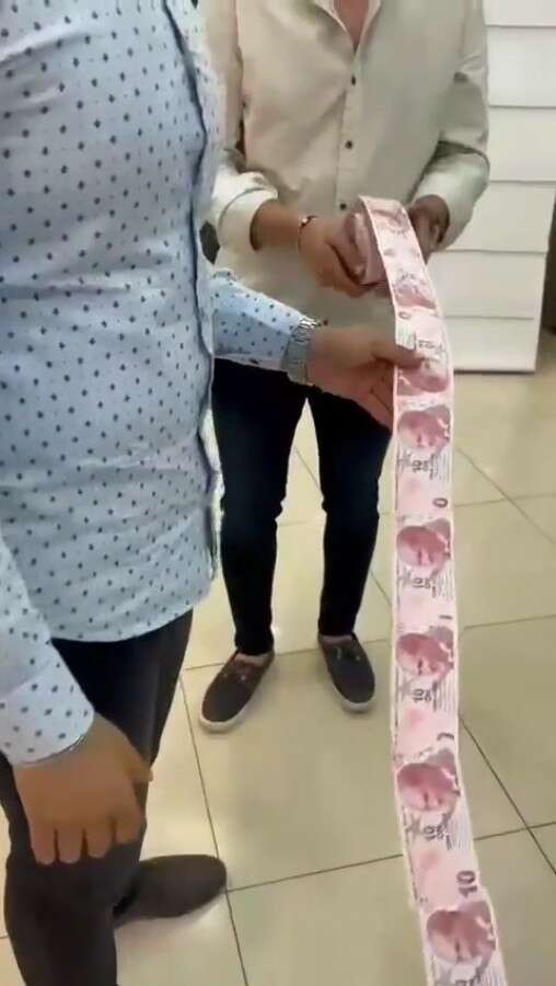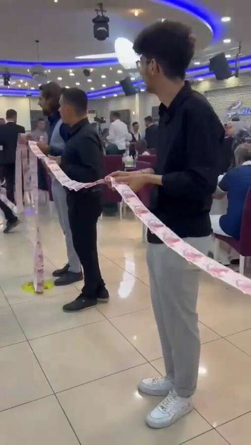 Düğün salonunun bir ucundan diğer ucuna uzayan 45 metrelik paraları gören davetliler şaşkınlıklarını gizleyemedi.