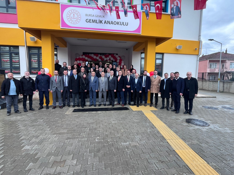 Bursa’nın Gemlik ilçesinde yapımı tamamlanan Gemlik Anaokulu, düzenlenen törenle eğitim öğretim hayatına başladı. Millî Eğitim Bakanlığı koordinasyonunda Avrupa Birliği fonlarıyla inşa edilen okulun açılış programına Gemlik Kaymakamı Osman Aslan Canbaba, AK Parti Bursa İl Başkanı Davut Gürkan, Gemlik Belediye Başkan Vekili Şükrü Aksu, Bursa İl Millî Eğitim Müdürü Gürhan Çokgezer, Gemlik İlçe Millî Eğitim Müdürü Adnan Uluğ ve davetliler katıldı.