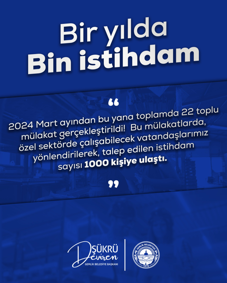 Gemlik Belediye Başkanı Şükrü Deviren, İstihdam Bürosu'nun ilçede önemli bir sosyal proje olduğunu vurgulayarak, iş bulmakta zorlanan vatandaşların bu projeyle işverenlerle bir araya geldiğini söyledi. Başkan Deviren, “Bu projeyle, iş arayan vatandaşlarımız istihdam fırsatlarına daha hızlı ve etkili bir şekilde ulaşabiliyor. İstihdam Bürosu, hem iş arayanlar hem de işverenler için büyük bir fayda sağlıyor. Zaman zaman yönlendirdiğimiz firmaları ve işleri tercih etmeyenler de oluyor. O yüzden istihdam sayımız ile yönlendirme sayımız arasında farklılık olabiliyor.” dedi.