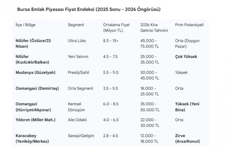 2026 Bursa Emlak Tahminleri ve Yatırımcı Notu