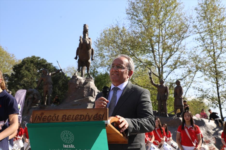 Heykel Meydanında son bulan kortej yürüyüşünde protokol üyeleri selamlama ve günün anlamına ilişkin konuşmalarda bulundu. İlk olarak kürsüye çıkan Bursa İl Milli Eğitim Müdürü Dr. Ahmet Alireisoğlu selamlama konuşması yaparak 23 Nisan Ulusal Egemenlik ve Çocuk Bayramının önemine değindi. Alireisoğlu bu güzel programın hazırlanmasında emeği geçen herkese teşekkür etti. Sonrasında kürsüye çıkarak konuşmasını sürdüren İnegöl Belediye Başkanı Alper Taban, yarınımızın teminatı çocuklarımız ve gençlerimiz için her türlü imkanları seferber edeceklerini ileterek ‘’ hayalleriniz büyük olsun’’ dedi. Başkan Alper Taban konuşmasında, ‘’23 Nisan Ulusal Egemenlik ve Çocuk Bayramımız kutlu olsun. Bugün aynı zamanda Türkiye Büyük Millet Meclisimizin de kuruluşunun yıl dönümü. Bu vesileyle Gazi Mustafa Kemal Atatürk olmak üzere silah arkadaşlarını da rahmet ve şükranla anıyoruz. Milli Eğitim Müdürlüğümüz ile bu dönem çok güzel çalışmaların altına imzamızı atacağız. Düzenleyeceğimiz programlarla çocuklarımıza daha güzel fırsatlar sunacağız. Sizlerden isteğimiz hayalleriniz büyük olsun. Büyük düşünün ve harekete geçin. Sizler de inşallah başta kendiniz olmak üzere, şehrimiz ve ülkemiz için en güzellerini yapacaksınız. Buna inanıyoruz.’’ dedi.