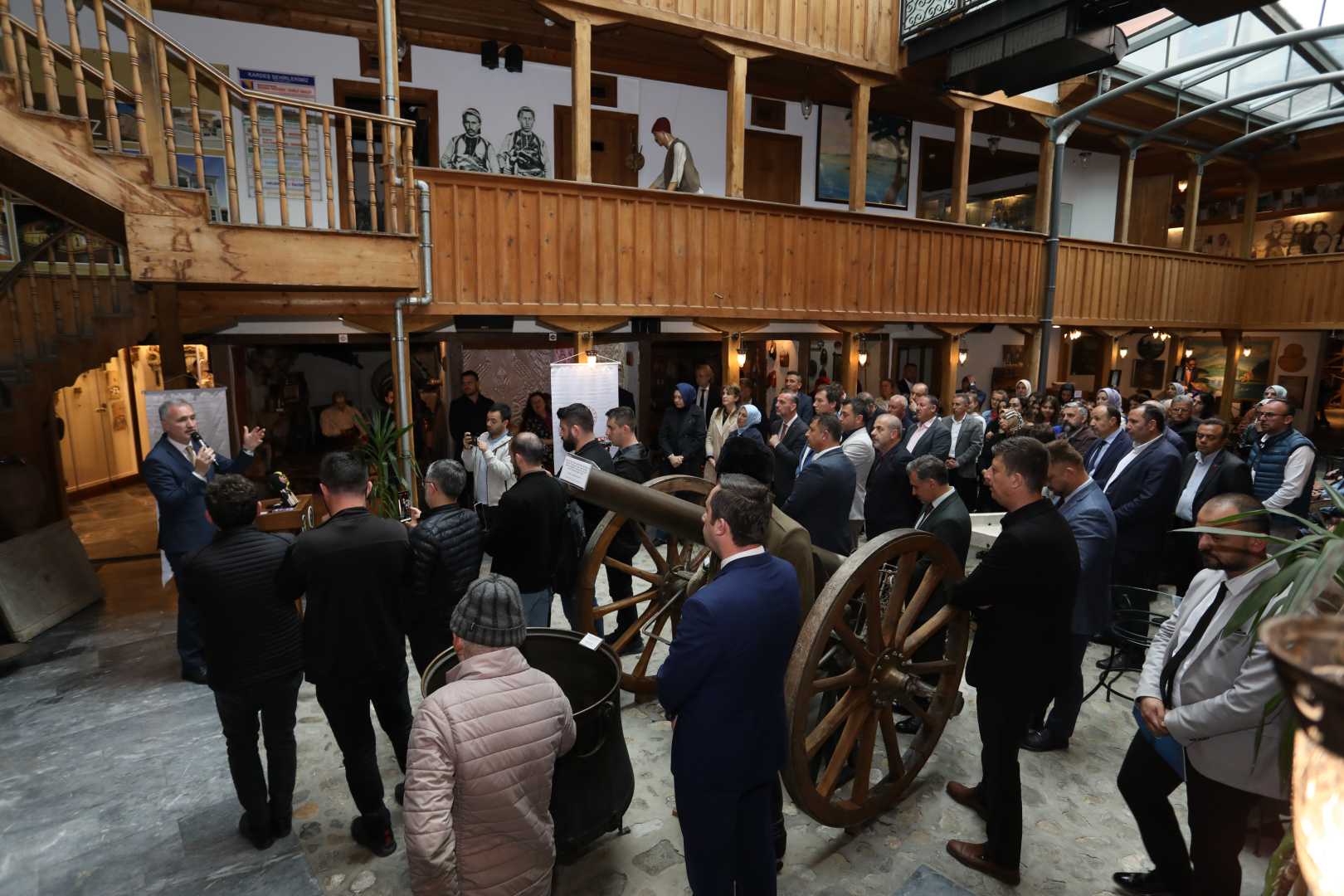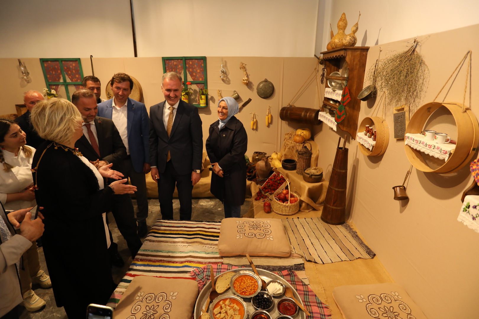 Serginin açılışı Pazartesi günü 14.00’da İnegöl ve Bursa protokolünün katılımıyla gerçekleştirildi. Serginin açılış konuşmasını Dr. Kamil Özer yaptı. İnegöl’den ve sahip olduğu değerlerden övgüyle söz eden Özer; “Bugün çok özel bir programla bir araya geldik. İnegöl yine her zamanki gibi bir farkı ortaya koyarak, gastronomi haftasında yine biz varız, biz her şeyin önündeyiz, her zaman sizin yanınızdayız ve hep ilklerdeyiz dedi. Başkanıma bu vesileyle çok teşekkür ediyorum, tebrik ediyorum kendisini. Kültür, sanat, tarih, edebiyat, bilgi… Bunlara ne kadar çok sahip çıkıyorsanız millet olarak, o kadar varsınız demektir. Ve bunu ne kadar geleceğe aktarabiliyorsanız da o kadar gerçek bir milletsiniz ve kökleriniz o kadar sağlam. İçinde bulunduğumuz bu mekan; tarihi, kültürü ve geçmişimizin izlerini ortaya koyan önemli bir mekan. Dolayısıyla bizim bütün müzelerimizi, kültürümüzü, değerlerimizi gelecek nesillerin görmesi lazım. Şu an burada gezildiğinde göreceğiniz alet ve edevatları belki bugün gençlerimiz görse bu ne diye bakacaklardır. Oysa dedelerimiz yüz yıllarca hayatını bunlarla sürdürdü. Dolayısıyla bu kültürü taşımak çok önemli” dedi.