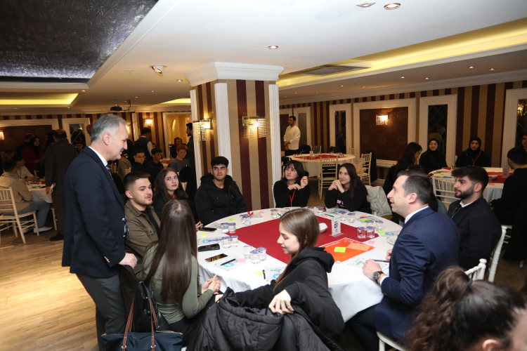 Başkan Taban’ın yanı sıra programın organizasyonunda büyük emekleri bulunan Uludağ Üniversitesi İnegöl İşletme Fakültesi Uluslararası Ticaret Anabilim Dalı öğretim üyesi Doç. Dr. Yüksel Okşak bir konuşma yaptı. Okşak, “Önümüzdeki ay itibariyle planladığımız İnegöl Gençlik Çalıştayının tabiri caizse betonunu dökelim dedik bugün. Biz istiyoruz ki internetin bizlere verdiği başlıklar değil de bizzat gençlerin kendilerinden sorunları, öneri ve çözümleri alalım. İnegöl’ün Belediyesine ve üniversitesine de bu yakışırdı. Sorunun gerçek sahipleriyle çözüm arayalım. Bunu da farklı bir formatta yapalım istedik. Bugün konumuz; İnegöl’de genç olmanın sorunları neler? Çözüm önerileri neler? Dünyada gençlik nereye gidiyor? Ve sizin kendinize dair beklentileriniz neler? Bu yönde bir arama konferansı yapacağız” dedi.