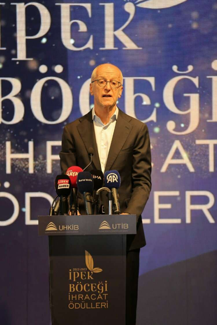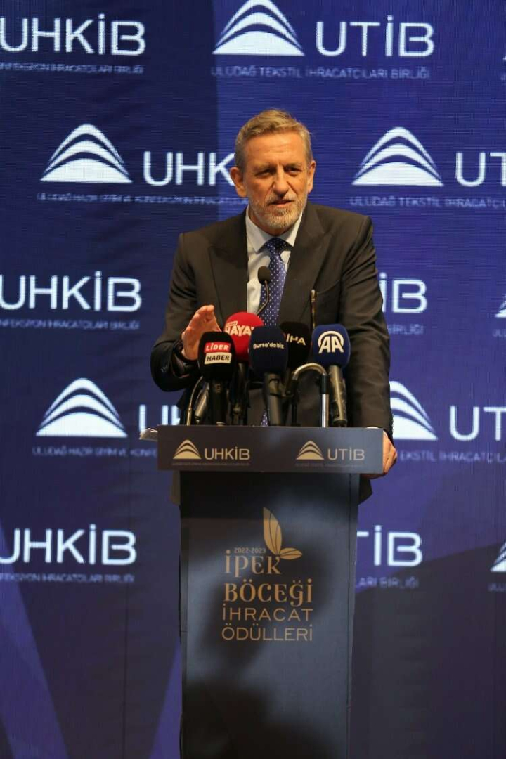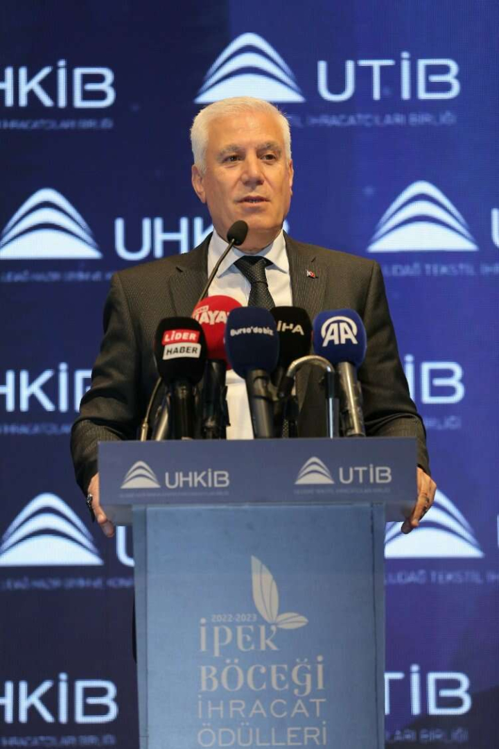 Bursa Büyükşehir Belediye Başkanı Mustafa Bozbey ise konuşmasına ülkemiz ve Bursa için değer yaratan tüm ihracatçıları tebrik ederek başladı. Dünya pazarında var olmanın giderek zorlaştığını, özellikle Çin gibi rekabetin yoğun olduğu ülkelerle mücadele etmenin daha da zorlu bir süreç gerektirdiğini vurgulayan Bozbey, “Günümüzde, iklim değişikliği ve sürdürülebilirlik gibi kavramlar giderek daha fazla önem kazanıyor. İş dünyası, üreticiler ve tüketiciler olarak, bu konulara duyarlılık göstermek zorundayız. Özellikle tekstilin merkezi olarak kabul edilen Bursa'mızda, markalaşma ve dünya pazarında ön plana çıkma hedefimiz var. Bursa, üretim ve ihracata verdiği önemle ülke ekonomisine katkı sağlayan bir kentimizdir. Bursalılar üretiyor ve devlete katkı sağlıyorlar, bu nedenle verdikleri katkı kadar destek alması gerektiğini düşünüyoruz. Katma değeri yüksek ürünlere odaklanarak, AR-GE ve inovasyon çalışmalarını artırmak, sektörlerimizin ihracat potansiyelini artırmanın yanı sıra Türkiye'ye önemli bir gelir sağlayacaktır” diye konuştu.
