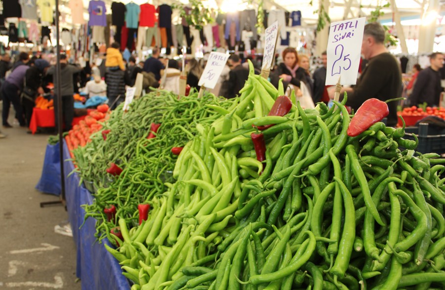 Bursalı vatandaşlar, iftar sofralarını taze sebze ve meyvelerden yapılmış yemeklerle doldurmak isterken, fiyatlar cep yakıyor. Bursa'nın en kalabalık pazar yerlerinden biri olan Nilüfer Agora Kapalı Pazar Alanı'nda tanesi 4 lira 16 kuruş olan soğan, dilimi 100 ila 200 lira arasında değişen karpuz ve 6 adeti 25 lira olan erik dikkat çekiyor. Geçtiğimiz hafta kilosu 100 liradan satılan taze fasulye ise 40 liraya kadar düşerek iftar sofralarında yer almaya başladı.