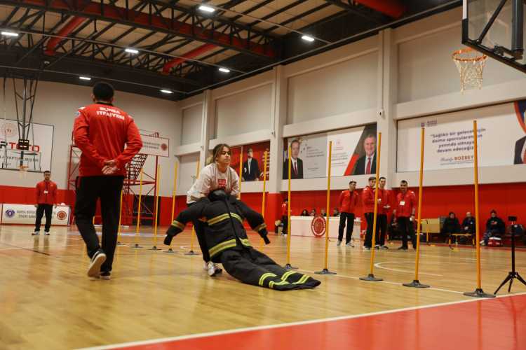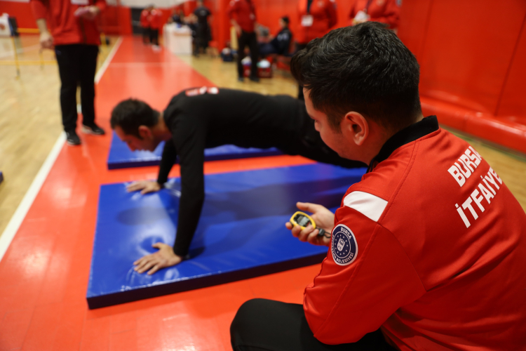 Bursa Büyükşehir Belediyesi’nin 100 itfaiye eri alımı için açtığı sınava giren 450 aday, uzman itfaiyeciler tarafından özel olarak hazırlanan parkurda fiziki dayanıklılık testine tabi tutuldu. Ağırlık taşıma, merdiven çıkma, slalom koşu, şınav, mekik ve araç kullanmadaki hünerlerini gösteren adaylar, ilk 100’e girebilmek için ter döktü.