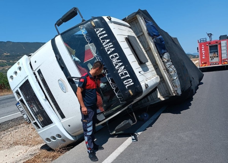 Kazayı görenlerin ihbarı üzerine olay yerine sağlık ve Jandarma ekipleri sevk edildi. Kazada devrilen kamyonda maddi hasar meydana gelirken, sürücü kazadan yara almadan kurtuldu.