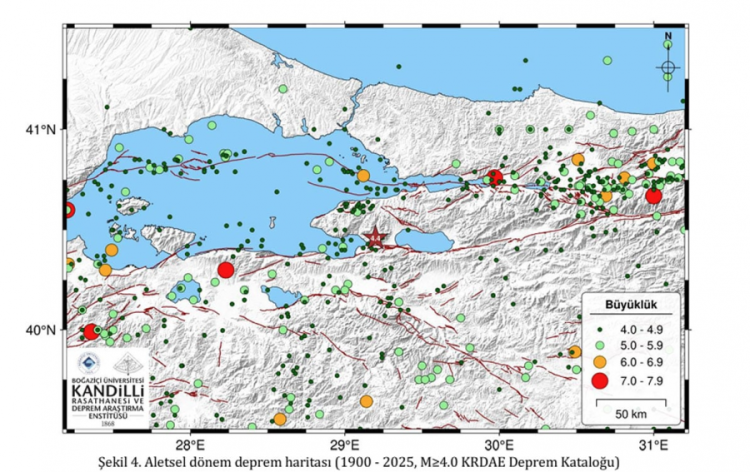 IX-X şiddetinde yıkıcı depremler yaşadığı, hem de aletsel dönemde (1900-2025) büyüklüğü 7.0 ile 7.9 arasında değişen çok büyük depremlere sahne olduğu hatırlatıldı. Bu bilgiler, bugünkü sarsıntının yaşandığı bölgenin ne kadar yüksek bir deprem tehlikesi altında olduğunun altını çizdi.
