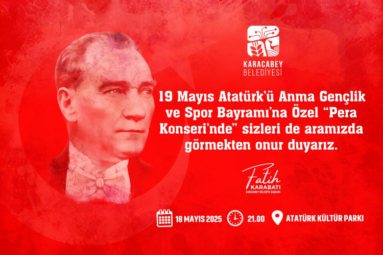 Başkan Karabatı, 18 Mayıs günü saat 21.00’de Karacabey Belediyesi tarafından düzenlenecek olan Pera konserine tüm gençlerin ve ilçe halkının davetli olduğunu duyurdu. Gençliğe armağan edilen bu anlamlı günde, Karacabey’de coşku dolu anların yaşanacağı konserin, birlik ve beraberlik duygusunu pekiştireceği ifade edildi.