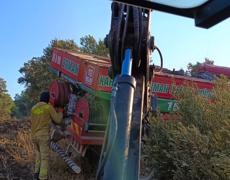 Yangının bildirilmesinin ardından Karacabey ve Bandırma itfaiye ekipleri hızla olay yerine sevk edildi. Yangına karadan çok sayıda ekip ve araçla müdahale edilirken, Karacabey Belediyesi Fen İşleri Müdürlüğü’ne bağlı iş makineleri de yangın bölgesine gönderildi. Özellikle alevlerin zeytinlik dışındaki ormanlık alana ve yerleşim yerlerine sıçramaması için iş makineleriyle kritik hatlarda güvenlik şeritleri oluşturuldu.