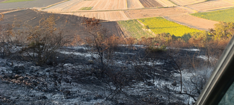 Edinilen bilgilere göre yangın, önceki gün öğle saatlerinde henüz belirlenemeyen bir nedenle başladı. Alevler kısa sürede rüzgarın da etkisiyle büyüyerek çoğunluğu zeytinlik olan alana yayıldı. Bölgedeki anız tarlalarının da etkilenmesiyle yangının geniş bir alana yayılması üzerine çevre mahalle sakinleri endişeye kapıldı.
