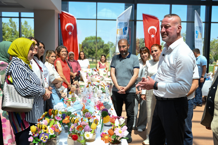 Sergi açılışının ardından Başkan Karabatı, atölye eğitmenleri İlknur Aksoy ve Emine Kanburoğlu’ndan yürütülen çalışmalar hakkında bilgi aldı. El emeği ürünleri tek tek inceleyen Başkan Karabatı, kursiyerleri ve eğitmenleri tebrik ederek, üretim kültürünü yaygınlaştırma hedeflerine olan inancını yineledi.