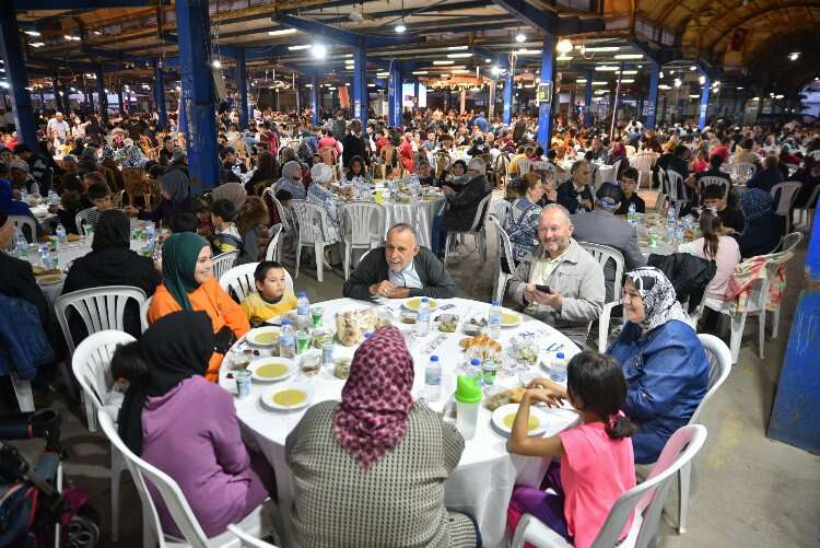 Bursa Büyükşehir Belediyesi’nin Karacabey’de düzenlediği iftar programında binlerce vatandaş aynı sofra etrafında buluştu.