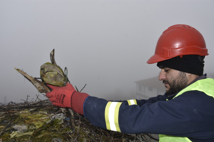 Karacabey'deki leylek yuvalarında geleneksel temizlik devam ediyor