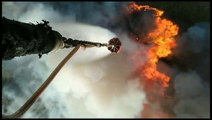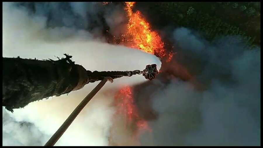 Ormana ait yangın söndürme helikopterlerinin havadan müdahalesi yangının söndürülmesinde önemli rol oynadı. O anlar da helikopter kamerasına yansıdı.