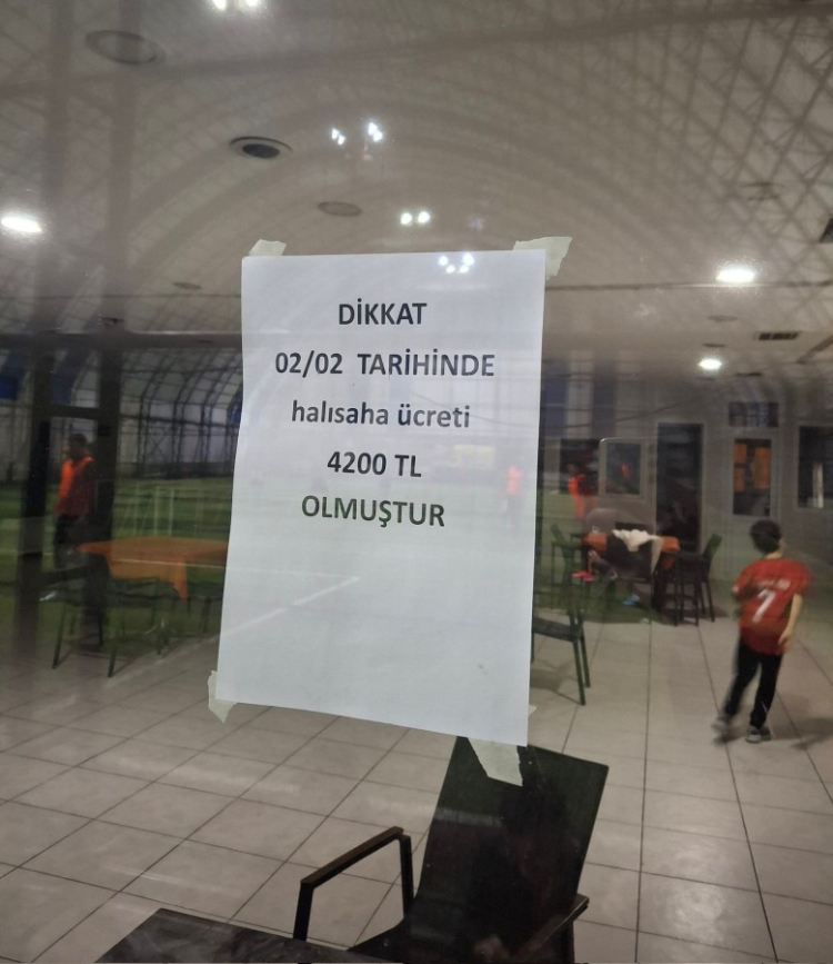 Halı saha kiralama ücretlerine zam yapıldı. 3.500 TL olan saatlik ücret, 2 Şubat 2026 itibarıyla 4.200 TL'ye yükseltildi.
