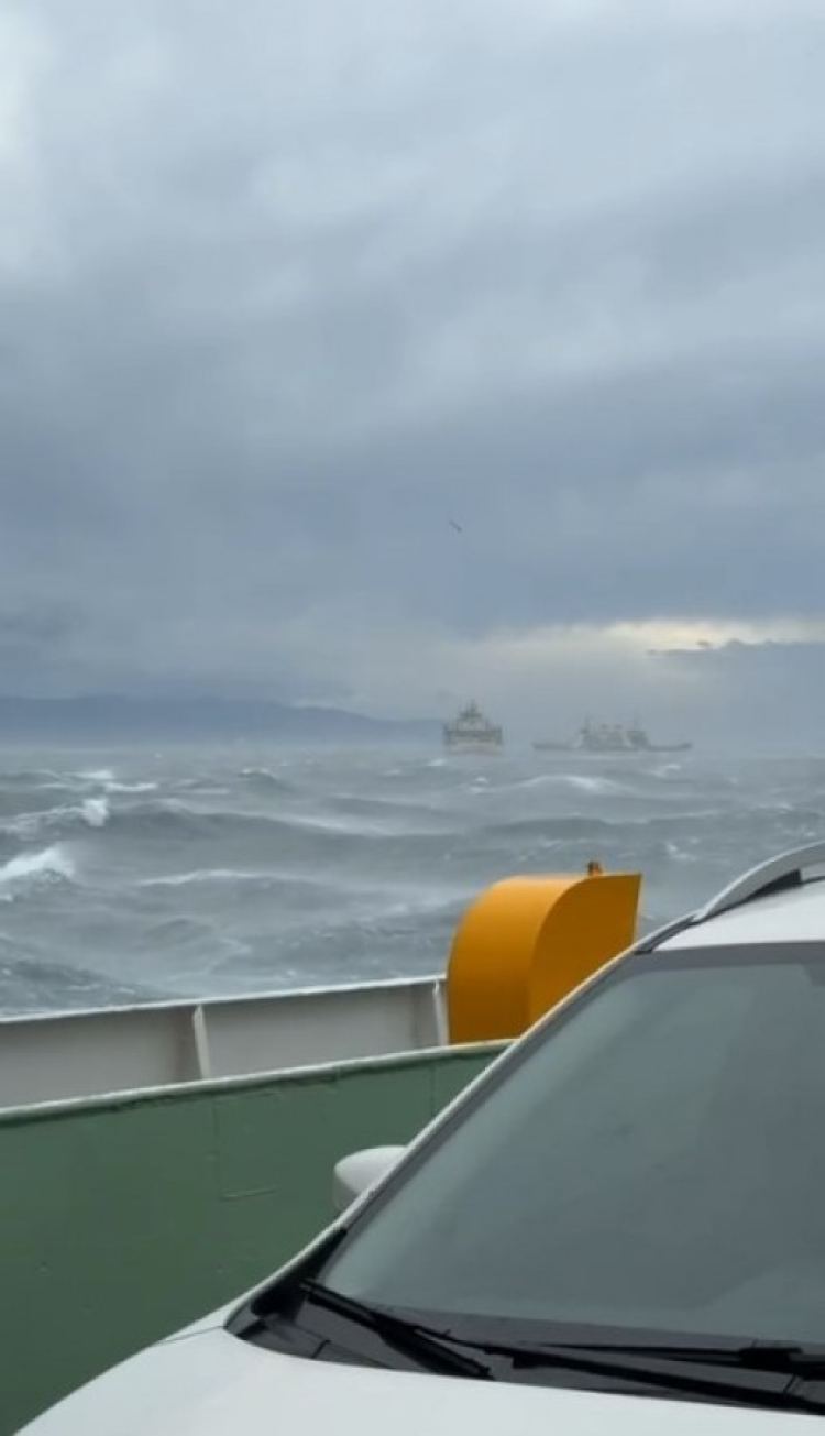 Yaklaşık 2 saattir deniz ortasında araçlarıyla mahsur kalan vatandaşlar kurtarılmayı beklerken, gemi kaptanı tarafından sık sık sakin olunması konusunda uyarıların yapıldığı öğrenildi.