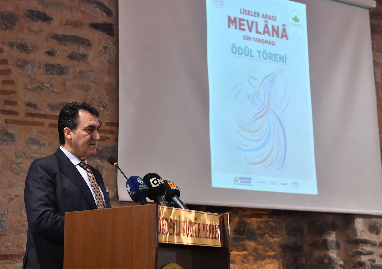 Ördekli Kültür Merkezi’nde gerçekleşen Liselerarası Mevlana Şiir Yarışması’nın ödül törenine Osmangazi Belediye Başkanı Mustafa Dündar’ın yanı sıra Osmangazi İlçe Milli Eğitim Şube Müdürü Mehmet Faysal Kayhan, yarışmanın jüri üyelerinden Metin Önal Mengüşoğlu, Prof. Dr. Nesrin Karaca, Ercan Yılmaz ve yarışmada derece elde eden öğrenciler ile velileri katıldı.