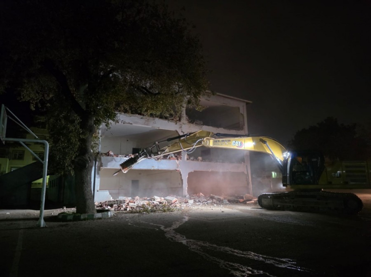 Bursa İl Milli Eğitim Müdürü Gürhan Çokgezer'in yıkım işlemlerini hızlandırılması ile tamamlanan süreç sonrasında Osmangazi ilçesinde bulunan 43 yıllık Hamitler Adnan Türkay Ortaokulu yıkıldı.