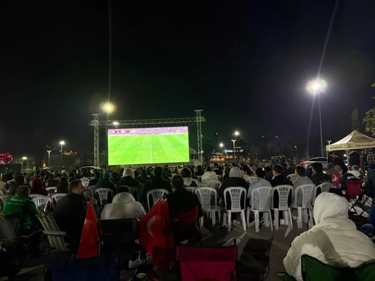 Bursa'da futbolseverler, A Milli Erkek Futbol Takımı'nın Dünya Kupası play-off turunda Romanya ile oynadığı kritik karşılaşma için Hüdavendigar Kent Parkı'nda buluştu. Bursa Büyükşehir Belediyesi tarafından organize edilen etkinlikte kurulan dev ekran sayesinde yüzlerce vatandaş, milli heyecana hep birlikte ortak oldu.