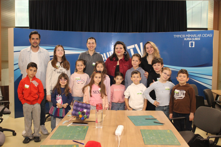 Etkinlik sonunda minik tasarımcılar çalışmalarını sergilerken Mimarlar Odası Bursa Şubesi Başkanı Şirin Rodoplu Şimşek her birine ayrı ayrı teşekkür etti ve hediyeler verdi. Mimarlar Odası Bursa Şubesi Yönetim Kurulu Sekreter Üyesi Aytül Küçüközdemir Aydın da Mimar Merve Şensöz’e katkılarından dolayı teşekkür plaketi takdim etti.