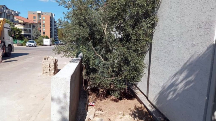 Mudanya Halitpaşa Mahallesindeki eczanenin sahipleri, tepkilere rağmen 7 adet zeytin ağacını bünyesine katmak için kaldırımı bitirdi.