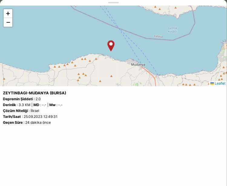 Bursa'da öğle saatlerinde hissedilen bir deprem meydana geldi.