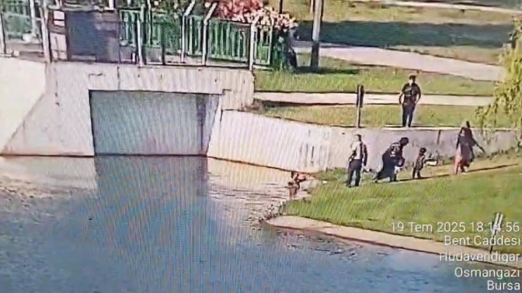 Güvenlik kamerasına yansıyan görüntülerde 1,5 yaşındaki çocuk Nilüfer Çayı'na düşmüş güvenlikçi de atlayıp onu kurtarmıştı. Birkaç dakika önce kaydedilen görüntülerde ise ailenin diğer çocuklarının da tehlikeye aldırış etmeden suya atladıkları görülüyor.