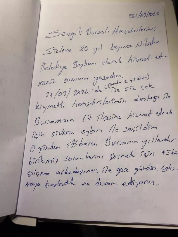 Sevgili Bursalı hemşehrilerim; Sizlere 20 yıl boyunca Nilüfer Belediye Başkanı olarak hizmet etmenin onurunu yaşadım.