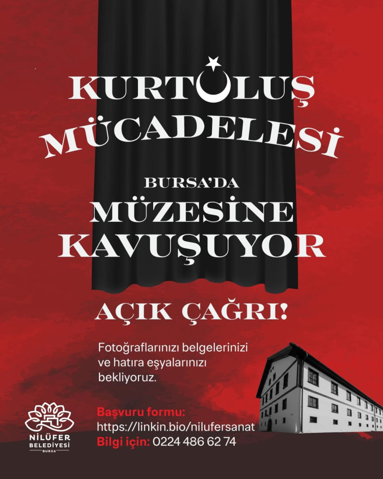 Nilüfer Belediyesi, Yaylacık Mahallesi’nde hazırlıkları süren Kurtuluş Müzesi’nin koleksiyonunu oluşturmak için vatandaşlara çağrıda bulundu. Milli Mücadele ve Cumhuriyet’in ilk yıllarına ait tarihi değere sahip materyaller, ortak hafızayı yaşatmak adına bu müzede sergilenecek.