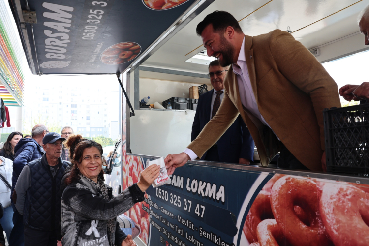 Karagöz ve BESOB Başkanı Fahrettin Bilgit vatandaşlara lokma ikram etti. Heyet, daha